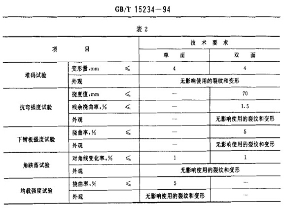 托盤應按第6章規(guī)定依次進行各項試驗,技術(shù)要求應符合表2規(guī)定。