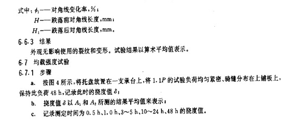 6.3.3 卸載后,外觀應無影響使用的裂紋和變形。試驗結(jié)果以算術(shù)平均值表示。